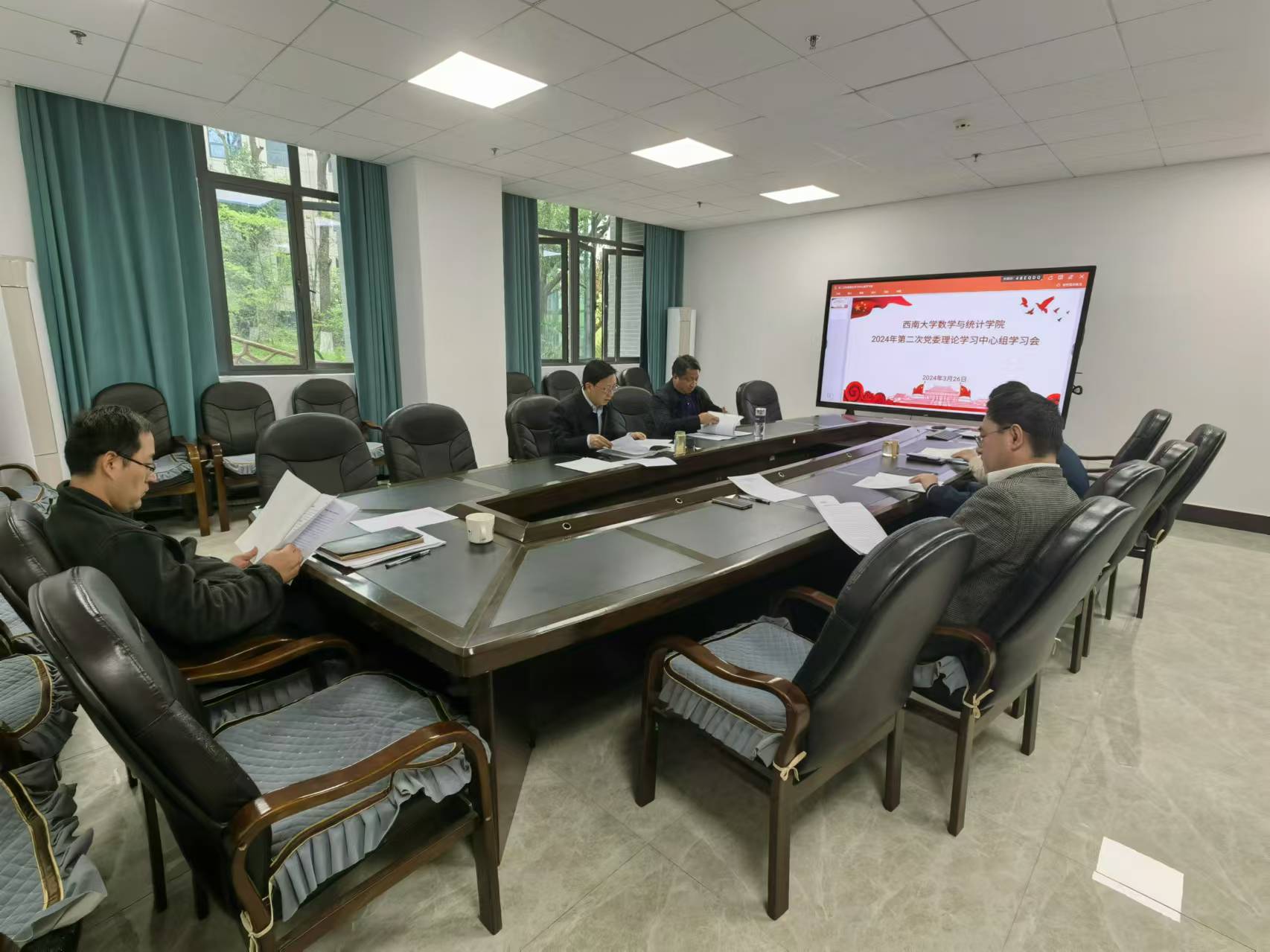 3月26日,学院在数学大楼316楼会议室举行了2024年第二次党委理论中心组学习会,专题学习习近平总书记全国两会重要讲话精神等相关内容。学院领导班子成员参会。党委书记唐宇主持会议。