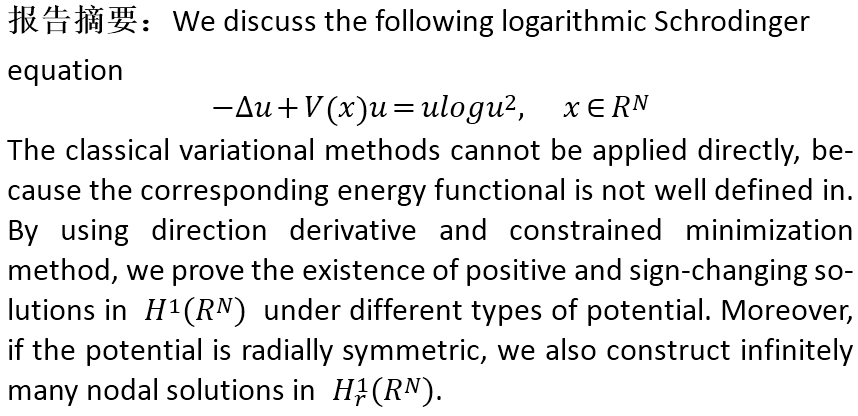 报告题目:Multiple solutions for logarithmic Schrodinger equations