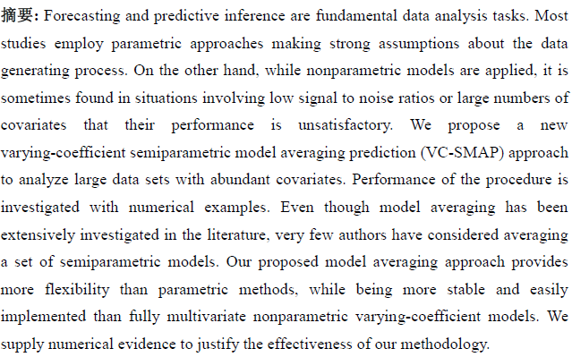 报告题目:Varying-coefficient semiparametric model averaging prediction