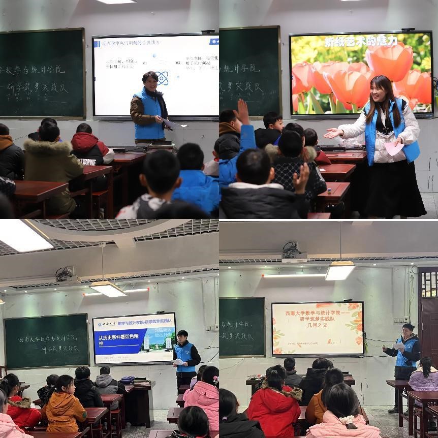 此外,实践队还开展了“送你一朵小红花”数学折纸感恩课堂、“承红色基因,写时代篇章”红色教育课堂、“生活中的数学”数学文化课堂、“诗词三万里,扬帆正当时”传统文化课堂、“小手拉大手,劳动庆元宵”劳动教育课堂等,以丰富多样的课程和活泼生动的教学,帮助同学们增长知识、抒发情感、提升能力,在新年新学期形成向上昂扬的精神面貌,助力孩子们走好成长之路。