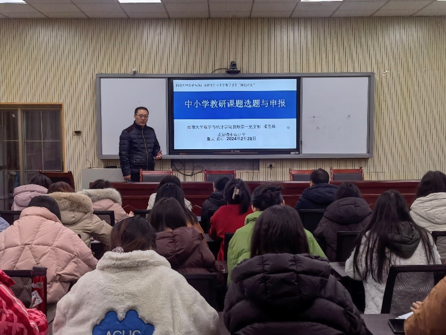 邓圣兵从教师需求入手,为咸宜小学全体教师开展了题为《中小学教研课题选题与申报》的专题讲座。他向教师们分享自身的科研选题经历,强调一个好的课题选题需要经过充分的研究和论证,要结合自身能力、细化研究角度,确保选题的可行性和科学性,也建议教师们积极关注已成功立项的课题,从中汲取经验,为自己的课题研究提供借鉴。教师党员蒲强分享党支部建设经验,对咸宜小学支部建设情况、主要建设经验和实际需求开展了调研,双方就如何从支部角度开展对接帮扶进行了深入交流。
