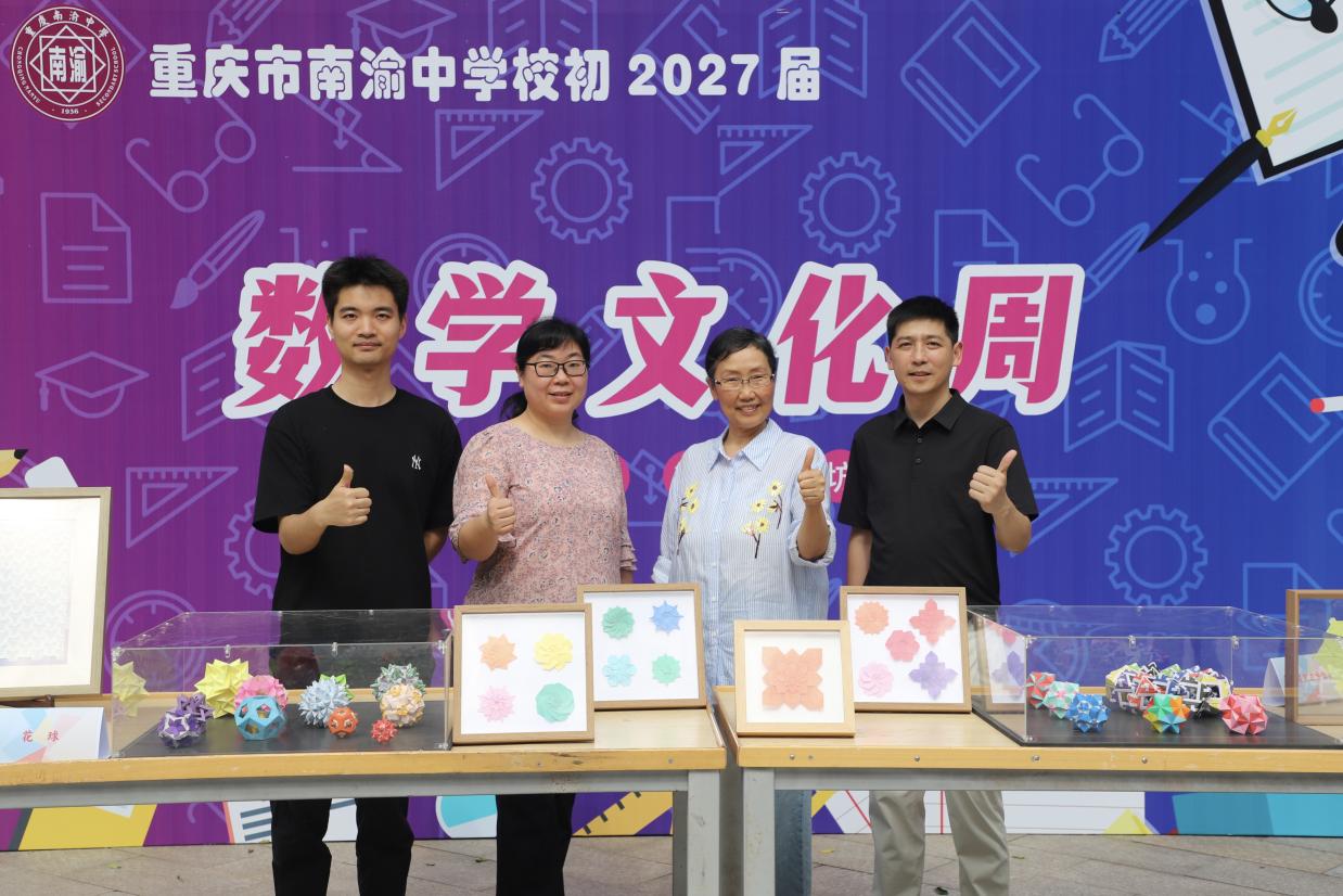 2025 年6月4日下午,z6com·尊龙 “小数点” 志愿者服务队走进沙坪坝区南渝中学,开启 “数你精彩 智绘坊间” 数学文化周折纸展之旅。黄燕苹教授携刘铁、张熠两位老师,带领 12 名志愿者队员,以折纸为笔,以数学为墨,为师生们描绘了一场别开生面的文化盛宴。