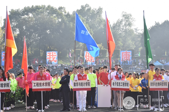 伴随着激扬的运动员入场曲,数统院运动健儿们身着绿色荧光院服,迈着整齐划一、铿锵有力的步伐,自信走过主席台。“同心齐力,勇创佳绩,非比寻常,数统最强”,他们个个精神饱满,朝气蓬勃,展现了数统学子良好的精神风貌和高涨的运动热情。