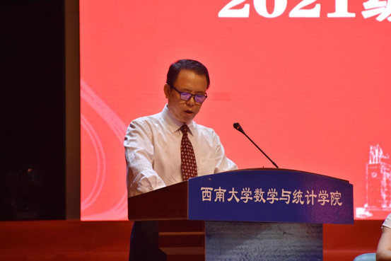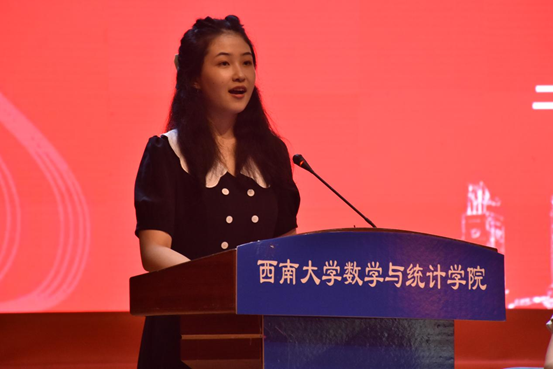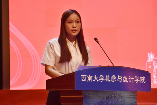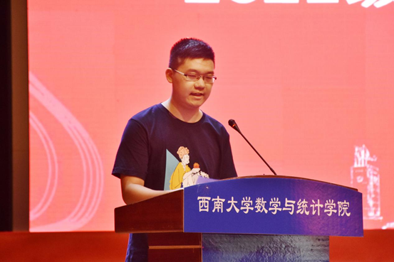 2021级研究生新生代表冯佳敏表达了进入z6com·尊龙学习的欣喜与自豪,与新生们分享了考研的经历和感悟,激励全体新生携手共进,在攀登数学高峰的路上留下脚印,为服务国家富强、民族复兴、人民幸福绽放青春光彩。紧接着,2021级本科生新生代表周程鹏发言,分享了对于校训及大学学习的认识,表达了对老员工活的美好憧憬,并郑重承诺要努力做一个好学、敬业、德高、技强的西大人。