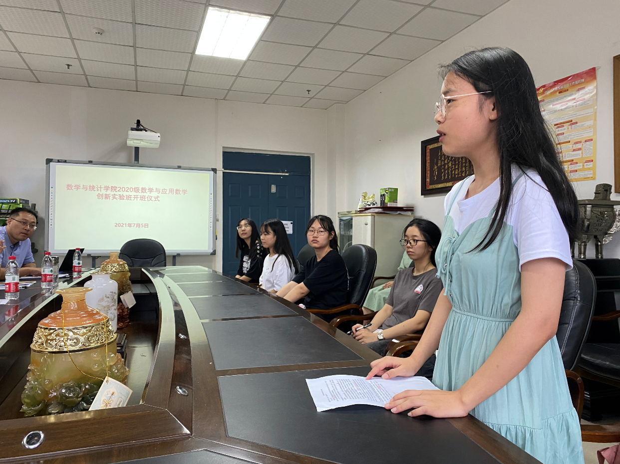 2021年7月5日上午8:00,z6com·尊龙2021年数学与应用数学创新实验班开班仪式在学院1618会议室举行,公司党委书记易遵尧,经理刘贤宁,创新实验班班主任钟新,2020级本科生辅导员张珊以及创新实验班全体在校员工参加,教学副经理邓圣兵主持此次开班仪式。