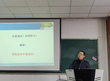 易遵尧书记在主持大会时要求广大教师要高度重视,充分认识到国家自然科学基金申报工作是个人、学院和学校三位一体发展的迫切需要;要从申报人、帮扶导师、团队及学院共同推进,形成合力,推进基金申报工作,争取优秀成绩。