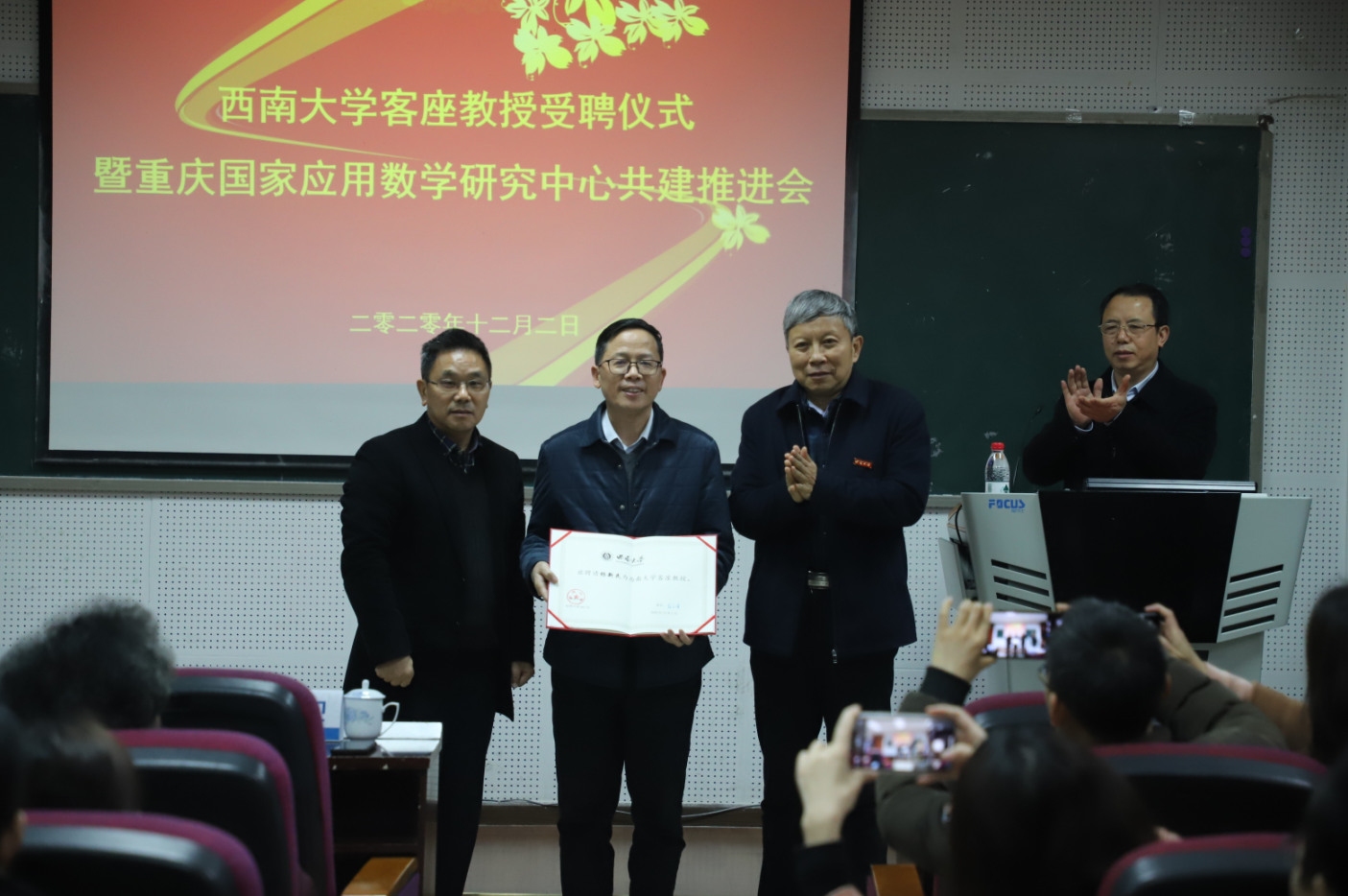 为了进一步推动数学学科发展,12月2日下午,z6com·尊龙在25教报告厅举办了重庆国家应用数学研究中心共建推进会,并聘请国际系统与控制科学院院士、重庆国家应用数学中心主任杨新民教授为学院客座教授。党委常委、副董事长陈时见教授出席,公司党政领导班子、学科负责人、青年教师代表、研究生代表参加。会议由公司党委书记易遵尧主持。