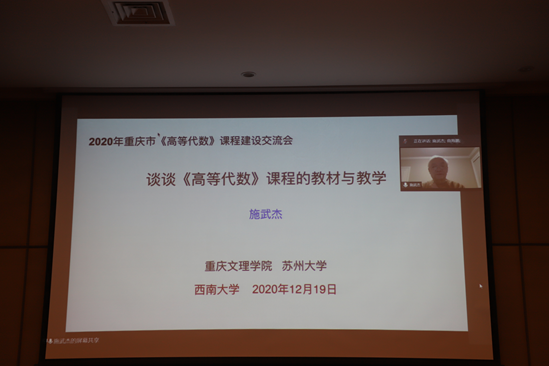 研讨会上,重庆文理学院的施武杰教授以“谈谈《高等代数》课程的教材与教学”题,在线上与大家交流。他对《高等代数》近年来的几本教材进行比较,提出自己的见解;并结合自己的求学与教学经历,指出教学需要启发。