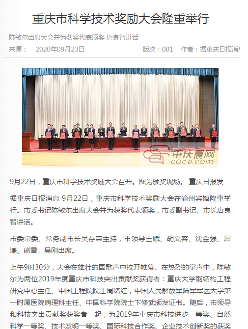 重庆晨报对重庆市科学技术奖励大会的报道