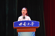 2019届研究生毕业生代表杨爽发言,她坚信只要敢于创新,拥有不抛弃、不放弃的精神,成功必将不远。