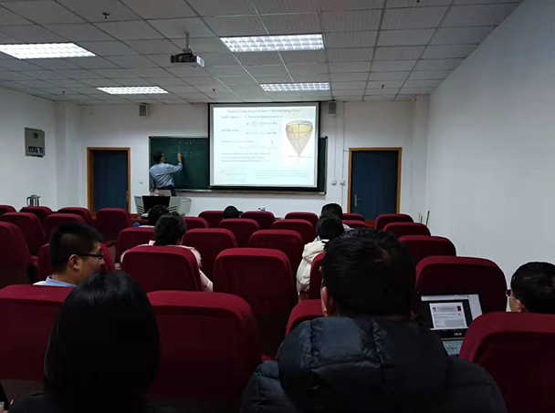 报告会上,Richard Moeckel 教授介绍了他在天体力学方面的最新研究成果。固定能量面上哈密顿系统的轨道可以视为构形空间对应Jacobi-Mauptertuis 度量的测地线;对二个自由度的系统, Jacobi-Mauptertuis 度量是二维构型空间上的一个度量。 本次报告介绍一些来自天体力学的简单例子,从 Kepler 问题 到 collinear and isosceles three-body problems。他讲解了如何将Kepler surface 嵌入到欧几里得空间,以及三体问题length-minimizing geodesics的相关问题。