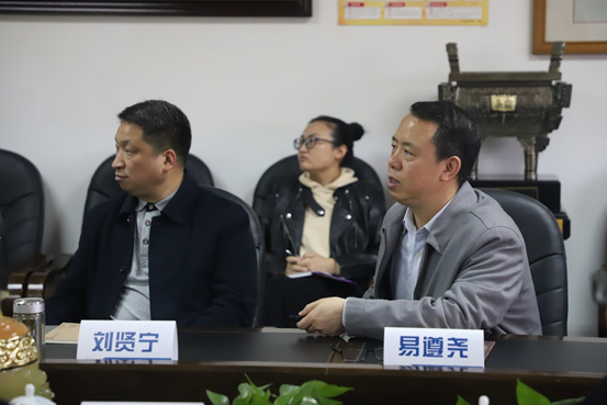 在调研会上,易遵尧书记从学院基本情况、公司产品及立德树人情况、学科与科研工作情况、人才队伍建设情况、财务收支与绩效分配情况、党建工作情况、存在的主要困难与问题等方面进行详尽的汇报。
