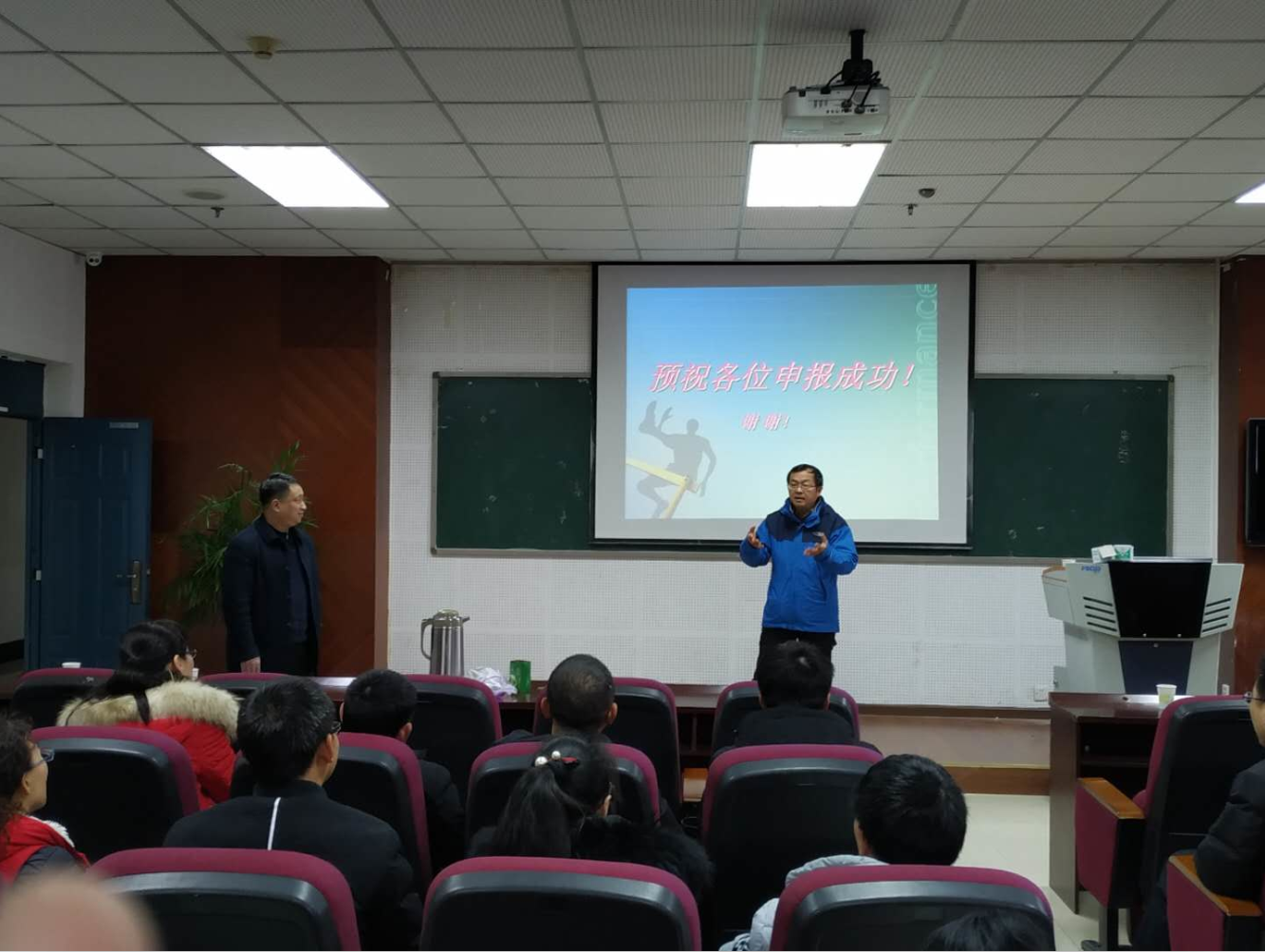 应科技处、校科协邀请,2019年1月9号下午,江西师范大学杨健夫教授在25教14楼学术报告厅就国家自然基金申报与相关人员进行交流。学校科技处黄斌副处长及相关教师到会,经理刘贤宁教授主持。