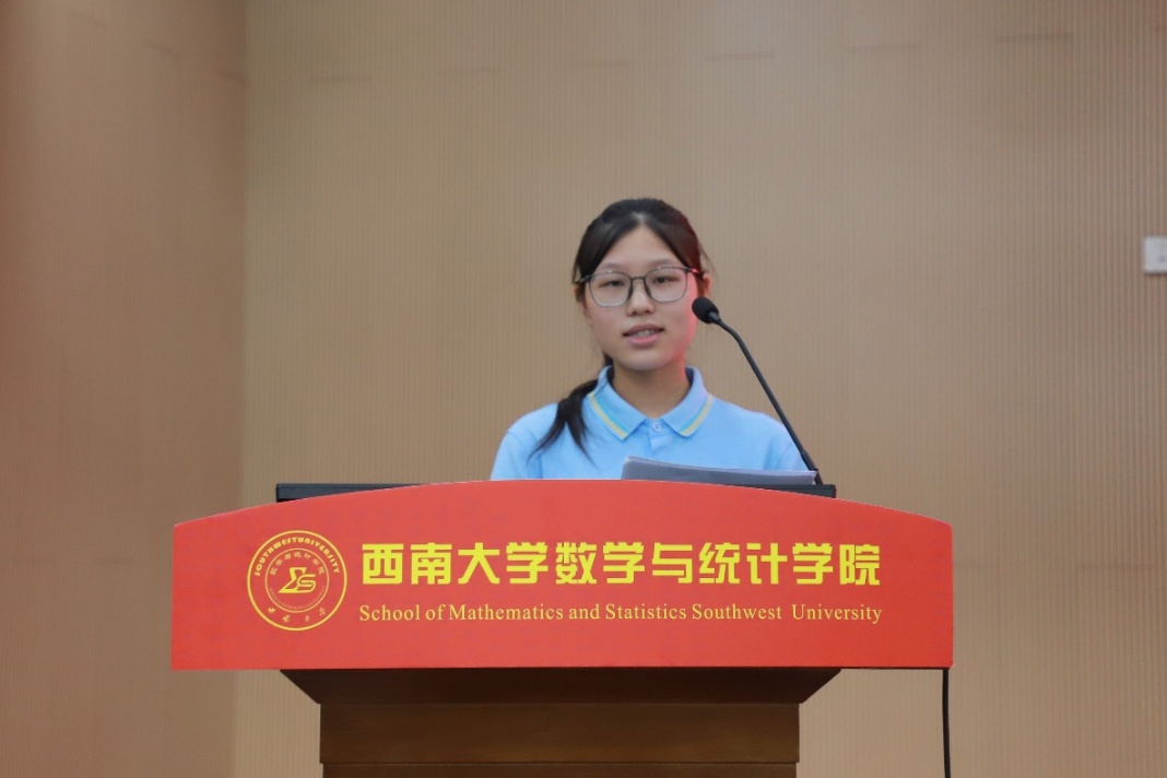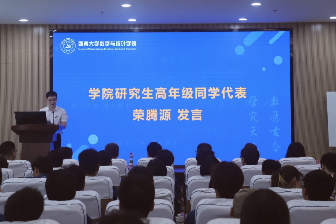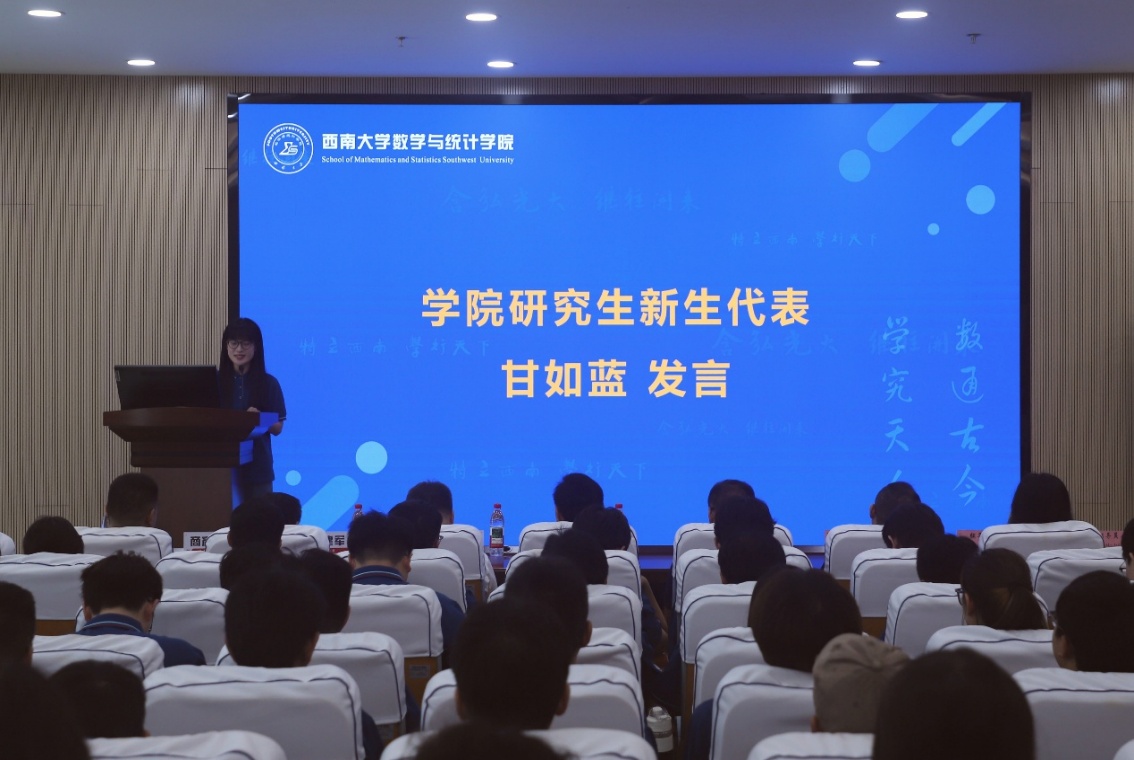 研究生新生甘如蓝同学代表新生发言,表达了站在人生新起点上要自强不息,争做融入国家发展、民族复兴新时代数学科学研究者的奋进新姿态。